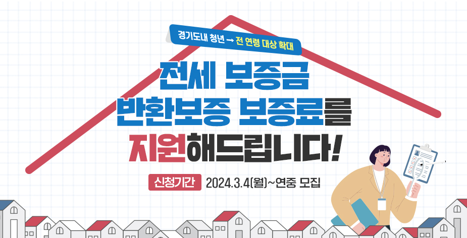 경기도는 전 연령을 대상으로 2024년 3월 4일부터 전세보증금 반환보증 보증료 지원 사업을 실시합니다. 전세 사기, 전세금 미반환, 깡통전세 등의 피해가 늘면서 이를 미연에 방지하고자 최대 30만 원까지 지원하는 이 사업의 지원대상, 신청방법, 내용 등을 아래와 같이 정리해 보았습니다.